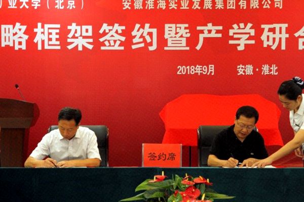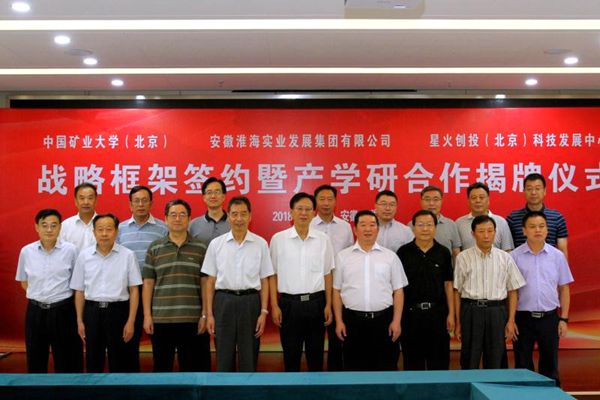 本网讯 9月9日上午,中国矿业大学(北京)、安徽淮海实业发展集团有限公司、星火创投(北京)科技发展中心产学研合作揭牌暨战略合作框架签约仪式在淮北市举行。