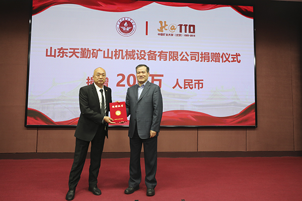 山东天勤矿山机械设备有限公司向我校捐赠200万元