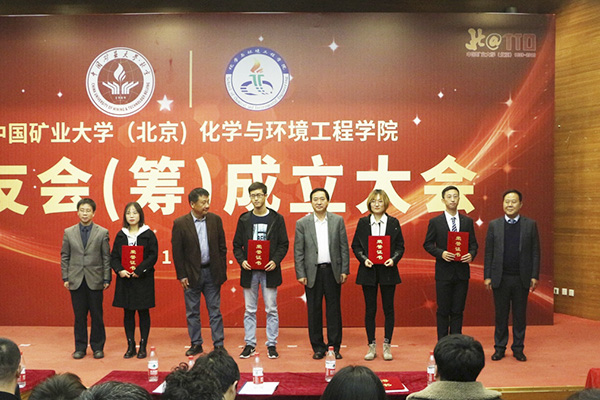 本网讯 11月9日下午,中国矿业大学(北京)化学与环境工程学院校友会(筹)成立大会在民族楼407隆重举行,会上审议通过了校友会(筹)机构组成,对2019级推免研究生进行了表彰。副校长赵峰华、原副校长朱书全、对外联络与合作处处处长高洁,在学院捐资奖学的企业负责人、校友代表、院领导班子全体成员、系主任(书记、联络员)和教师学生代表共300余人参加活动。学院党委书记赵亮主持校友会(筹)成立大会,专职组织员许泽胜主持2019级推免研究生表彰会。
