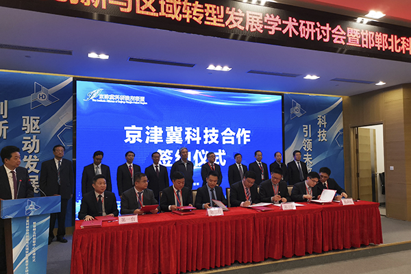 本网讯 为进一步加强产学研合作,为京津冀协同发展战略做贡献,共同建设国际领先的先进采矿科学技术新型研究机构,扎实推进科技成果落地转化,落实主题教育整改措施,11月14日,能源与矿业学院赴邯郸参加“京津冀科技协同创新与区域转型发展论坛”,并与北京科学技术研究院邯郸分院签约,在邯郸北科创新中心开展共建。