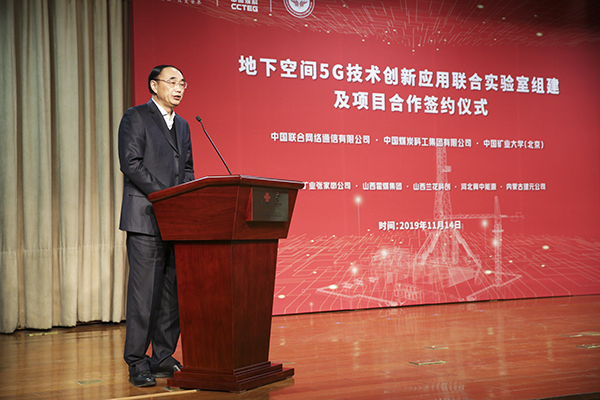 本网讯 11月14日,我校与中国联合网络通信集团有限公司(以下简称中国联通)、中国煤炭科工集团有限公司(以下简称中国煤科)签署地下空间5G技术创新应用联合实验室组建协议。中国工程院院士王国法、我校校长葛世荣、中国煤科副总经理王虹、中国联通副总经理梁宝俊等领导出席签约仪式。