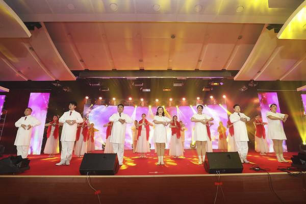 晚会以“追梦矿大人礼赞新中国”为主题,通过舞蹈、歌曲、音乐剧、音诗画、朗诵、器乐演奏、武术表演等多种形式,共同回首走过的2019年,歌颂“我的国”“ 我的家”“ 我的校”。校领导现场抽取幸运观众,为教职工送上新年祝福。