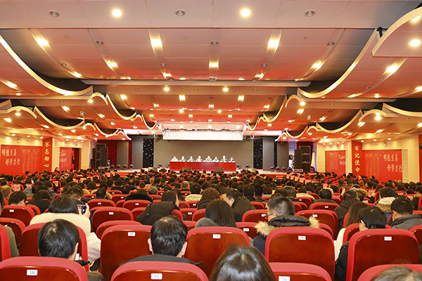 本网讯 2019年12月31日下午,学校召开教职工大会,总结2019年工作,部署2020年工作。校党委书记徐孝民讲话,校长、党委副书记葛世荣主持会议。校党政领导王忠强、董晞、范中启、王家臣、刘波、赵峰华出席会议,全校教师干部职工共800余人参加会议。