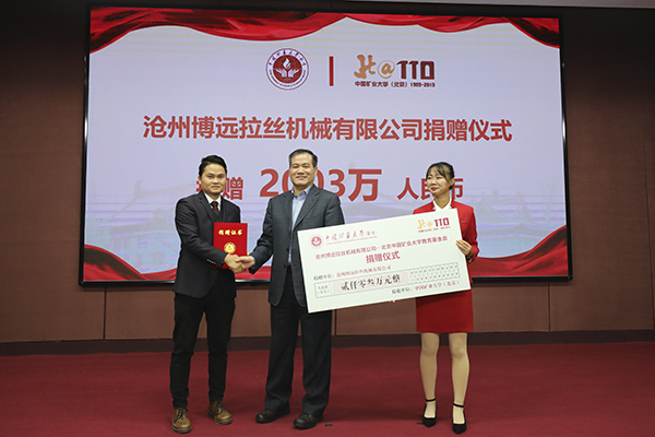 沧州博远拉丝机械有限公司向我校捐赠2003万元
